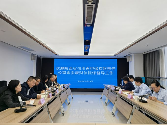 10月16日,陜西省信用再擔保有限責任公司黨委委員、副總經理李璐帶領督導組一行來安康財信擔保開展2025年度政府性融資擔保體系政策目標落實專項督導工作,并召開匯報座談會議。安康財信擔保總經理陳步華、副總經理張萬坤、相關部門負責人參加會議。