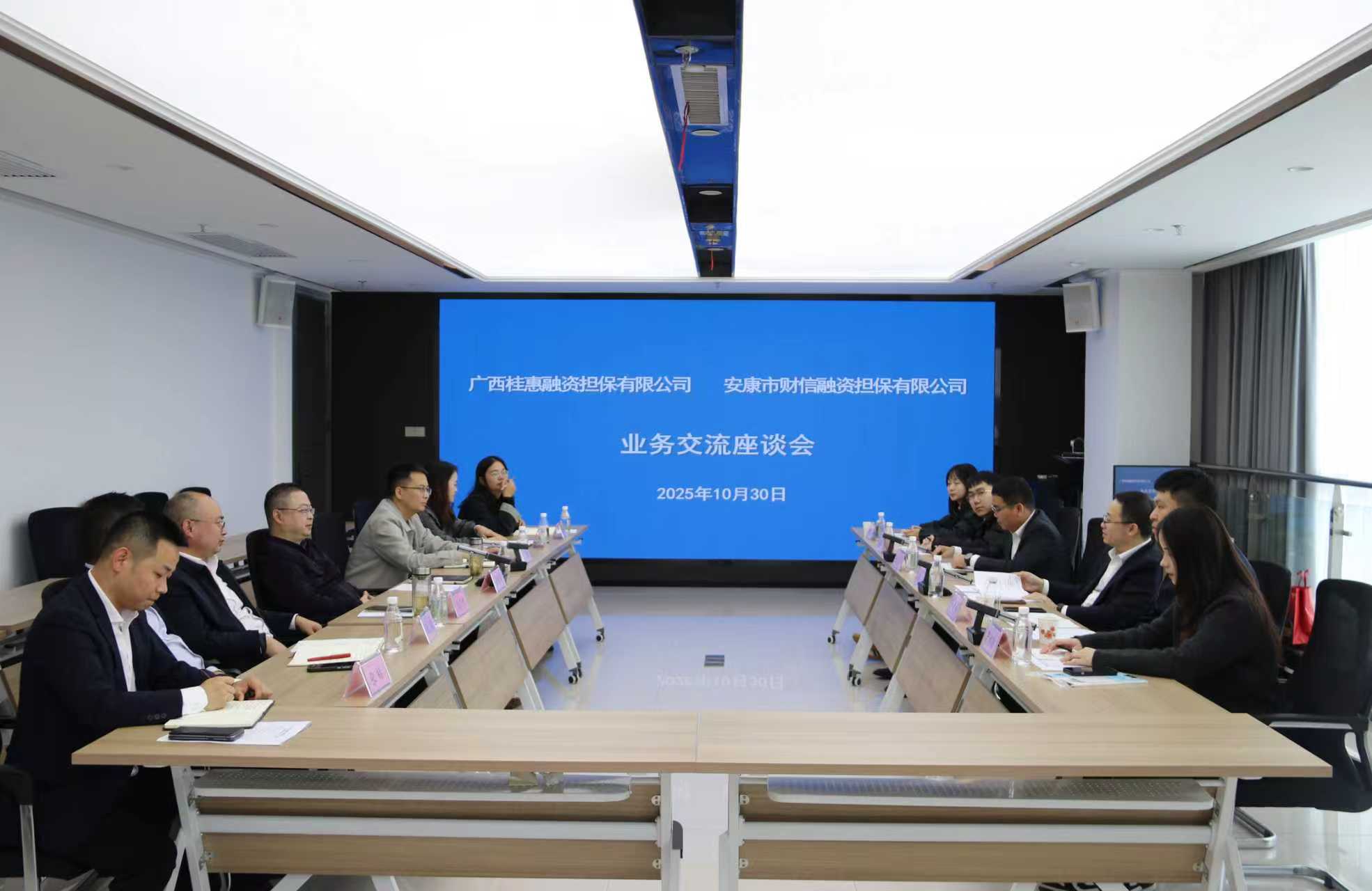 10月30日,廣西桂惠融資擔(dān)保有限公司副總經(jīng)理潘誠(chéng)一行6人來(lái)安康財(cái)信擔(dān)保開展交流座談。安康財(cái)信擔(dān)保董事長(zhǎng)滕海濤,副總經(jīng)理張萬(wàn)坤及公司業(yè)務(wù)、風(fēng)控、法務(wù)、財(cái)務(wù)、綜合部門負(fù)責(zé)人參加座談會(huì)。